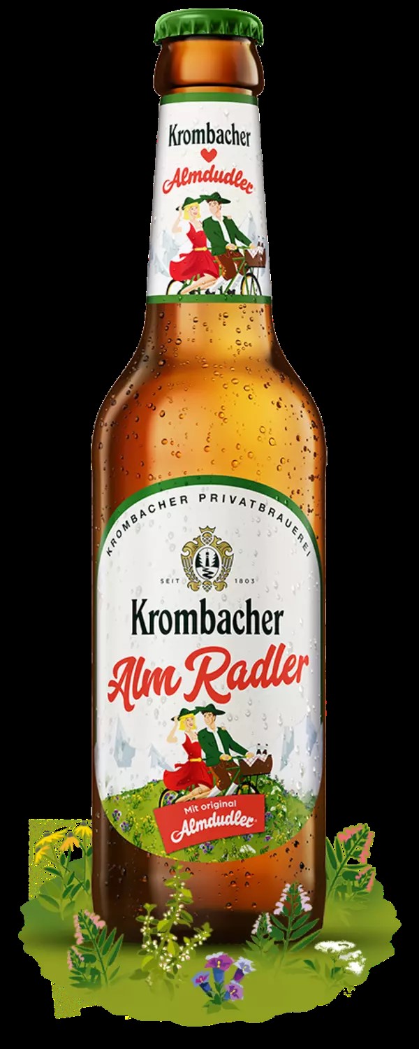 Almdudler, die österreichische Kräuterilmonade, küsst das fein-herbe Krombacher Pils.